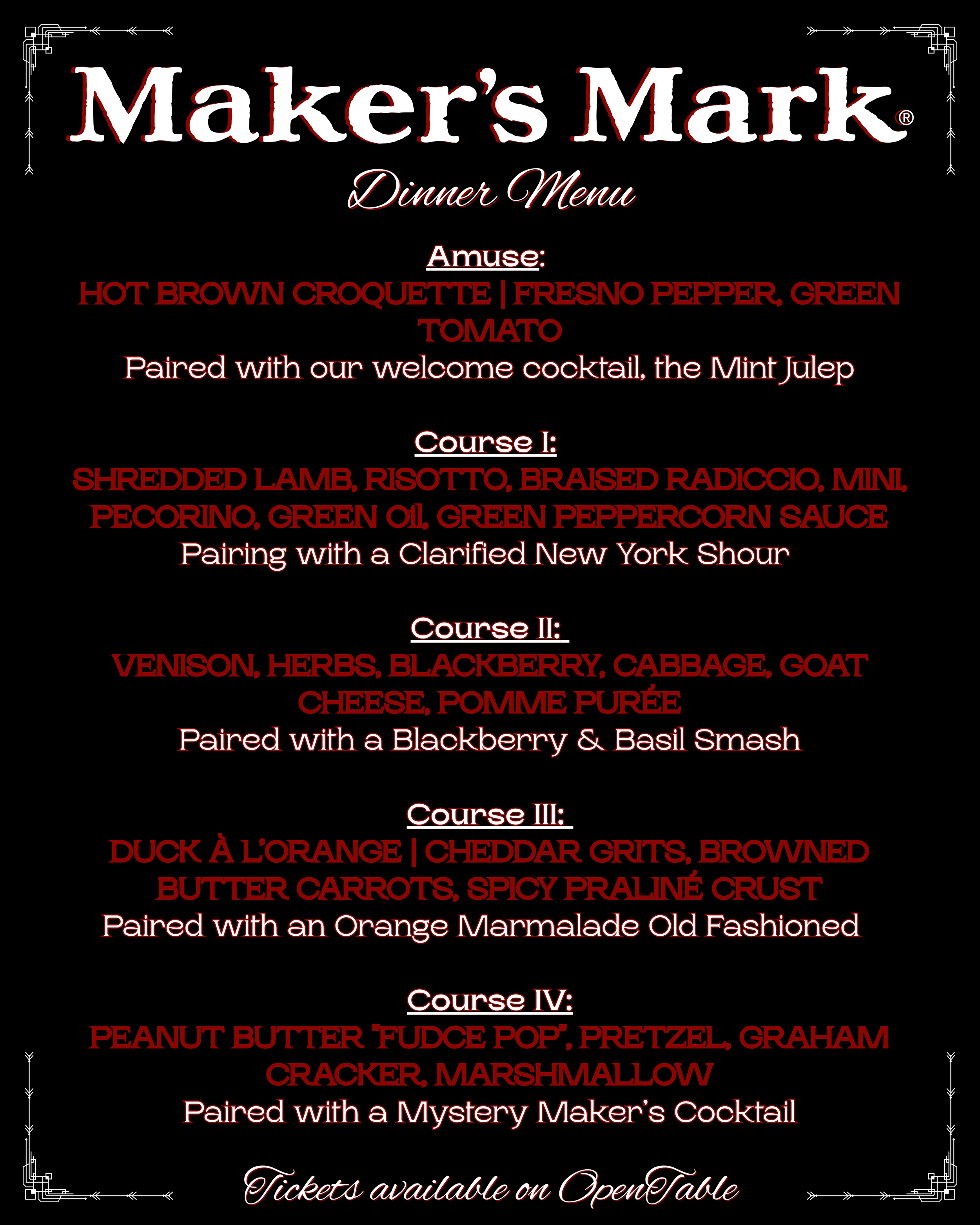 maker’s mark bourbon Dinner